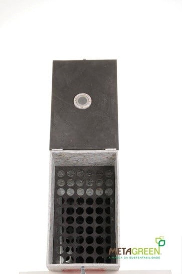Caixa ecológica com carvão ativado para armazenamento de 60 lâmpadas de 1,20m ou 60cm.