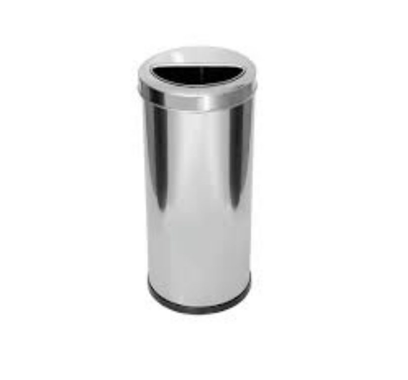 Lixeira fabricada em aço inox com tampa meia lua. Design moderno, são altamente resistentes e duráveis, muito práticas sendo portátil.